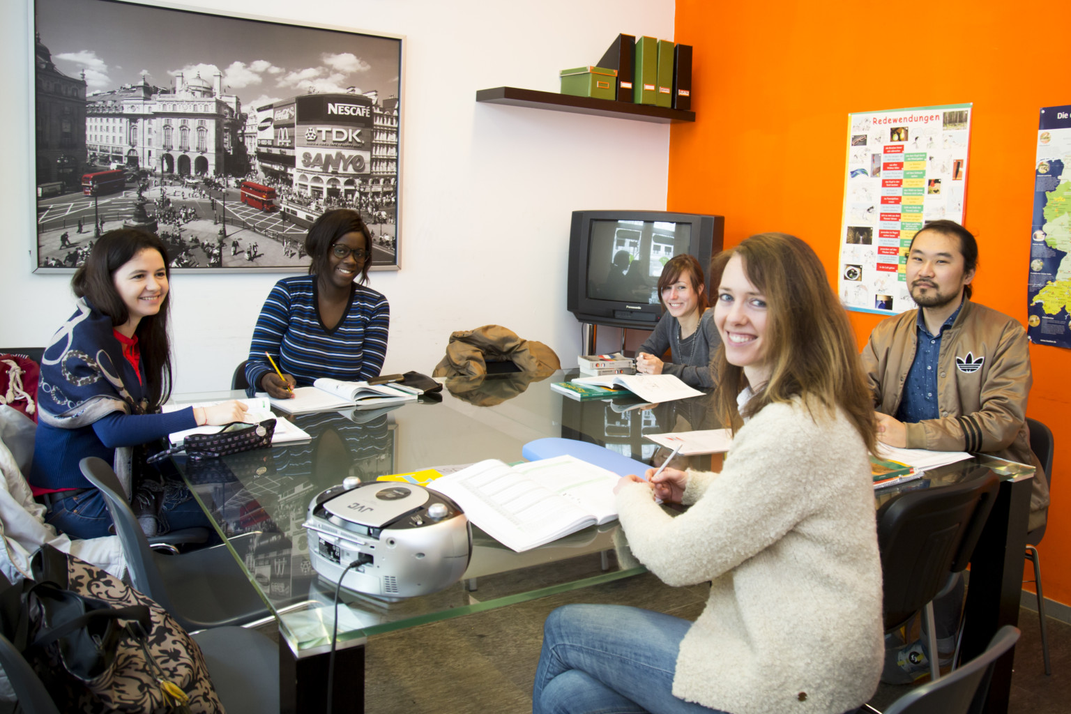 d’insegnamento al materiale di lavoro, fino alla consulenza personale del singolo studente. Grazie a una lunga ed approfondita esperienza nel campo delle lingue straniere il nostro team internazionale ha potuto concepire e sviluppare nuovi metodi di insegnamento, a pieno vantaggio dei partecipanti a i nostri corsi. Imparare una nuova lingua significa soprattutto capirla e parlarla. Per raggiungere questo scopo, siamo innanzitutto assolutamente convinti della necessità di esercitarsi e di apprendere in piccoli gruppi. Per frequentare con successo un corso di lingua è altresì importante capire cosa e come ci si prefigge di imparare. I programmi di insegnamento e gli scopi dell’apprendimento saranno così dettagliatamente spiegati e discussi all’inizio di ogni singolo corso. Durante la lezione si predilige la lingua parlata, per affrontare al meglio i problemi dell’impatto con la comunicazione verbale orale (la più difficile, diretta e veloce) ed esercitarsi al meglio. Contemporaneamente e durante le esercitazioni in classe e a casa, ci si imbatterà nella lingua scritta (leggere e scrivere), con l’aiuto di internet, del libro di testo e del nostro archivio multimediale. Il nostro scopo è di arricchire e ampliare le conoscenze linguistiche die nostri studenti mediante una partecipazione attiva e non una ricezione passiva di nozioni.